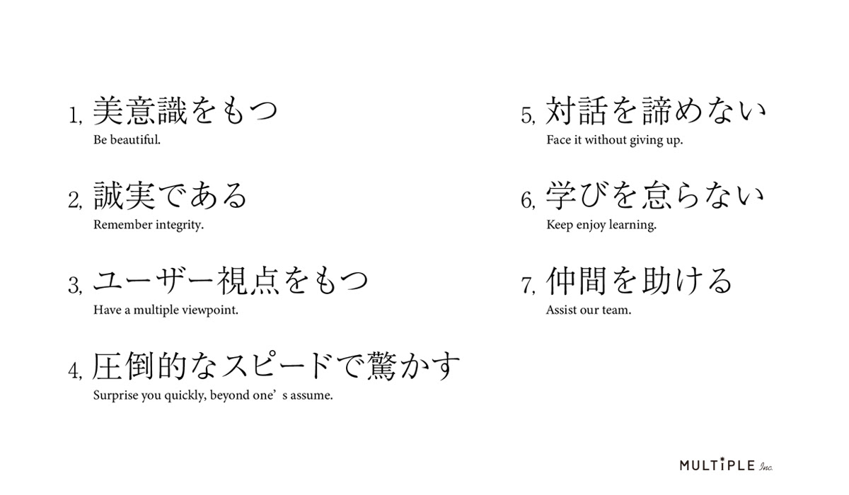 MLTiPLEは、より明確な方向性を持ち、組織文化づくりの一環として、クレドを策定しました。クレドは、私たちが大切にする価値観や行動指針を示しており、私たちの組織文化を強化するための枠組みとなります。